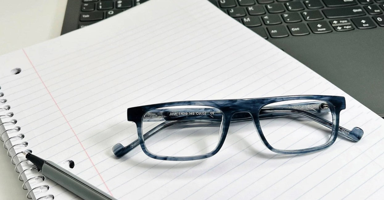 The optical quality CR 39 lenses block out blue light and UV up to 73%. The lenses have a hydrophobic coating which reduce smudges and are easy to clean. This combined with a glare reducing AR coating make these long wearing and comfortable