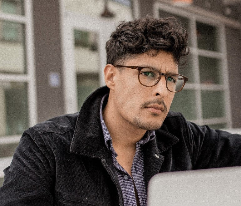 Introducing the new Ilya Blue Light blocking, ultra high end, optical quality reader from the experts at Renee's Readers. This slightly rounded frame has multi layered toning with well appointed details in an updated, classic look that you're going to love. The sculptured temples are finished with a squared tip shape which looks and wears very comfortably. The triple barrel hinges add strength and stability and integrated nose pads which won't 'hang up' when wearing these up top!